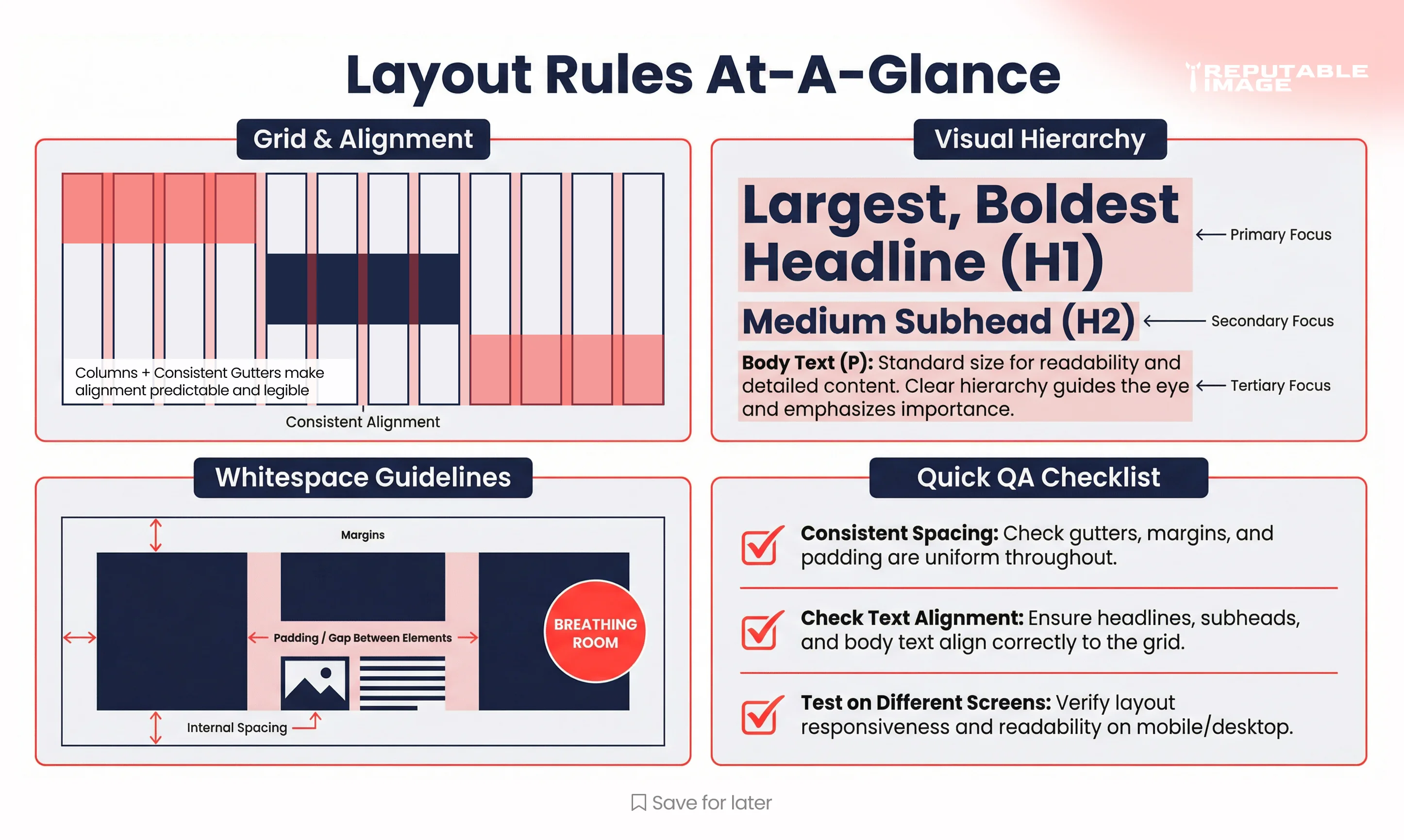 Use a simple grid to align elements consistently — a 12-column grid for flexible web content or a 6-column for social/shop assets works well. Grids aren’t constraints; they’re speed tools: once you commit to column widths and gutters, decisions about spacing and alignment disappear. Consistent grids make multi-person teams produce visually coherent work without micromanaging every post.